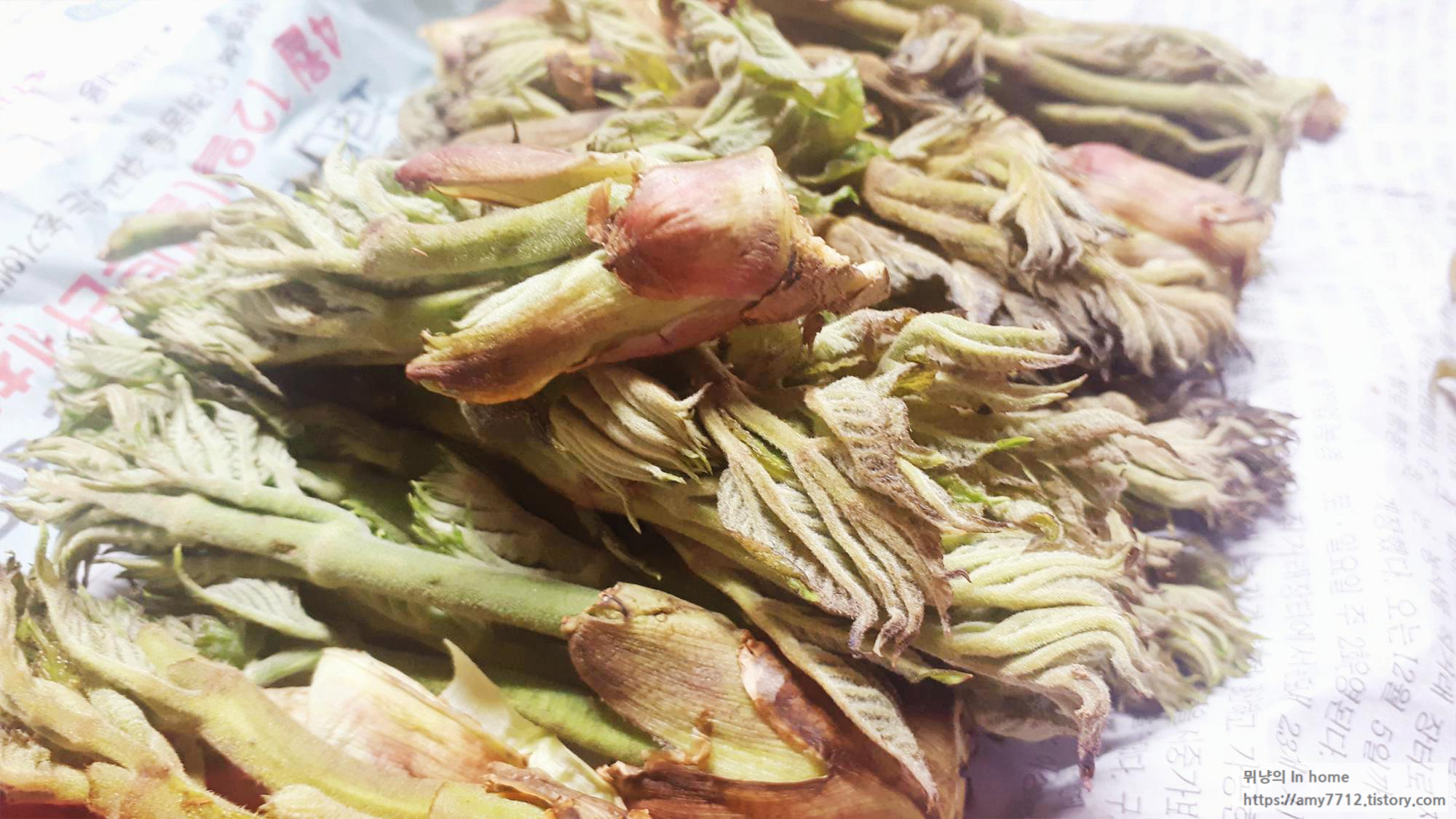 살짝 데쳐서 초고추장에 찍어먹거나, 두릅적, 김치, 튀김 샐러드로도 만들어 먹습니다.