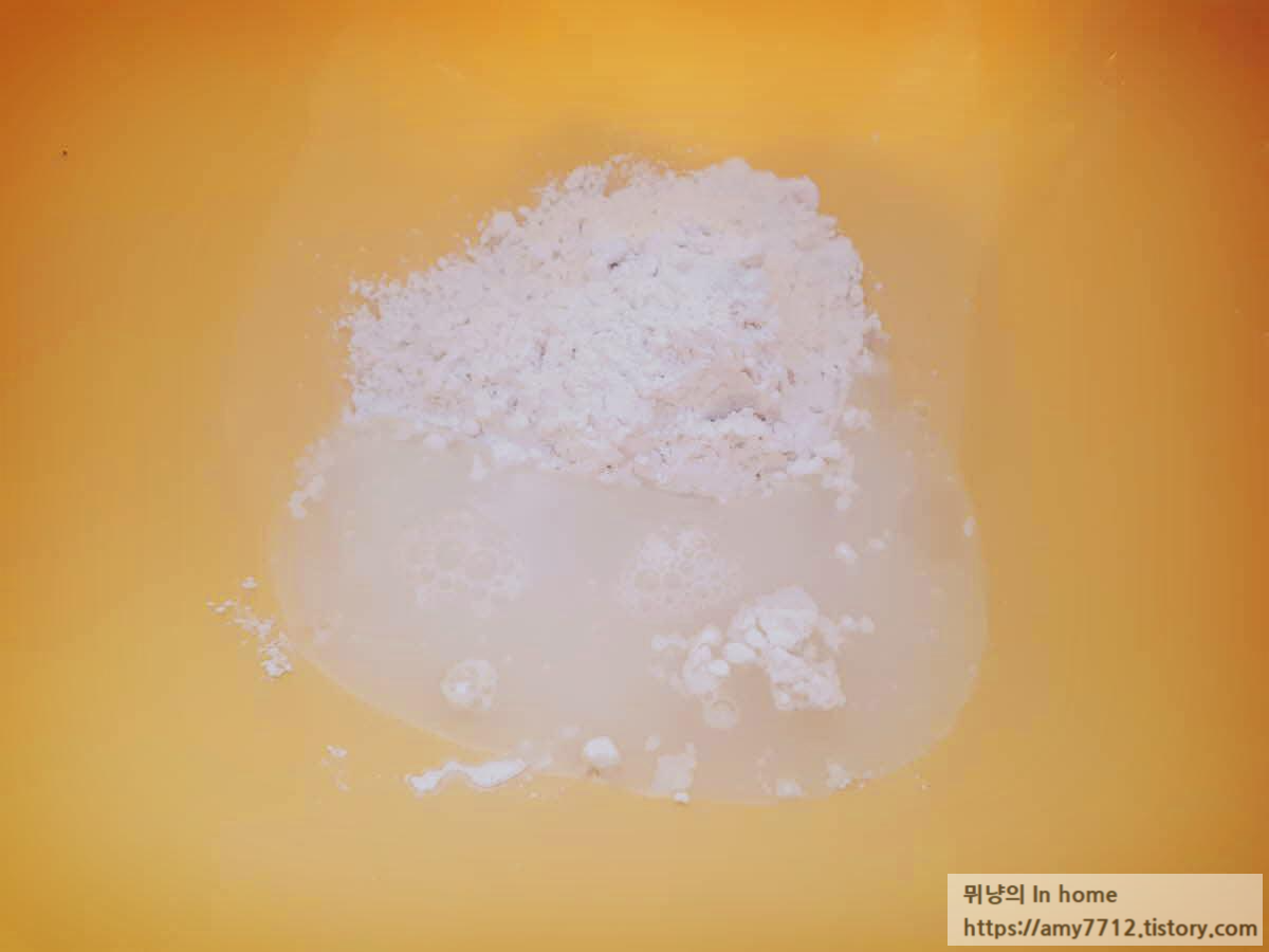 물 1/2컵과 부침가루 1/2컵을 볼에 넣고