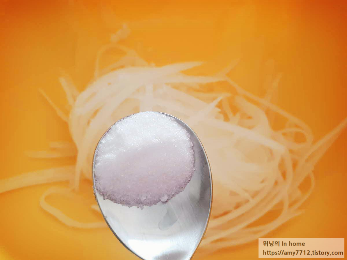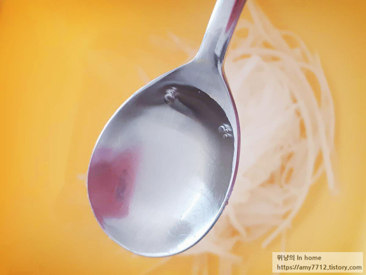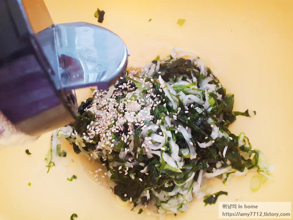 파래는 잠시 이 상태로 두고 무채를 양념해요.