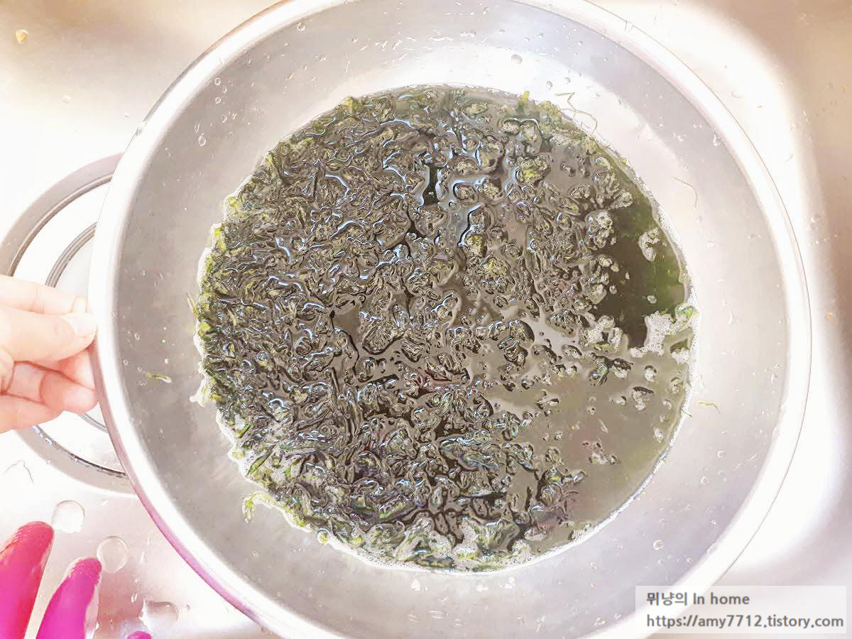 주먹 크기 정도의 파래 뭉치 2개를 물에 풀었어요.