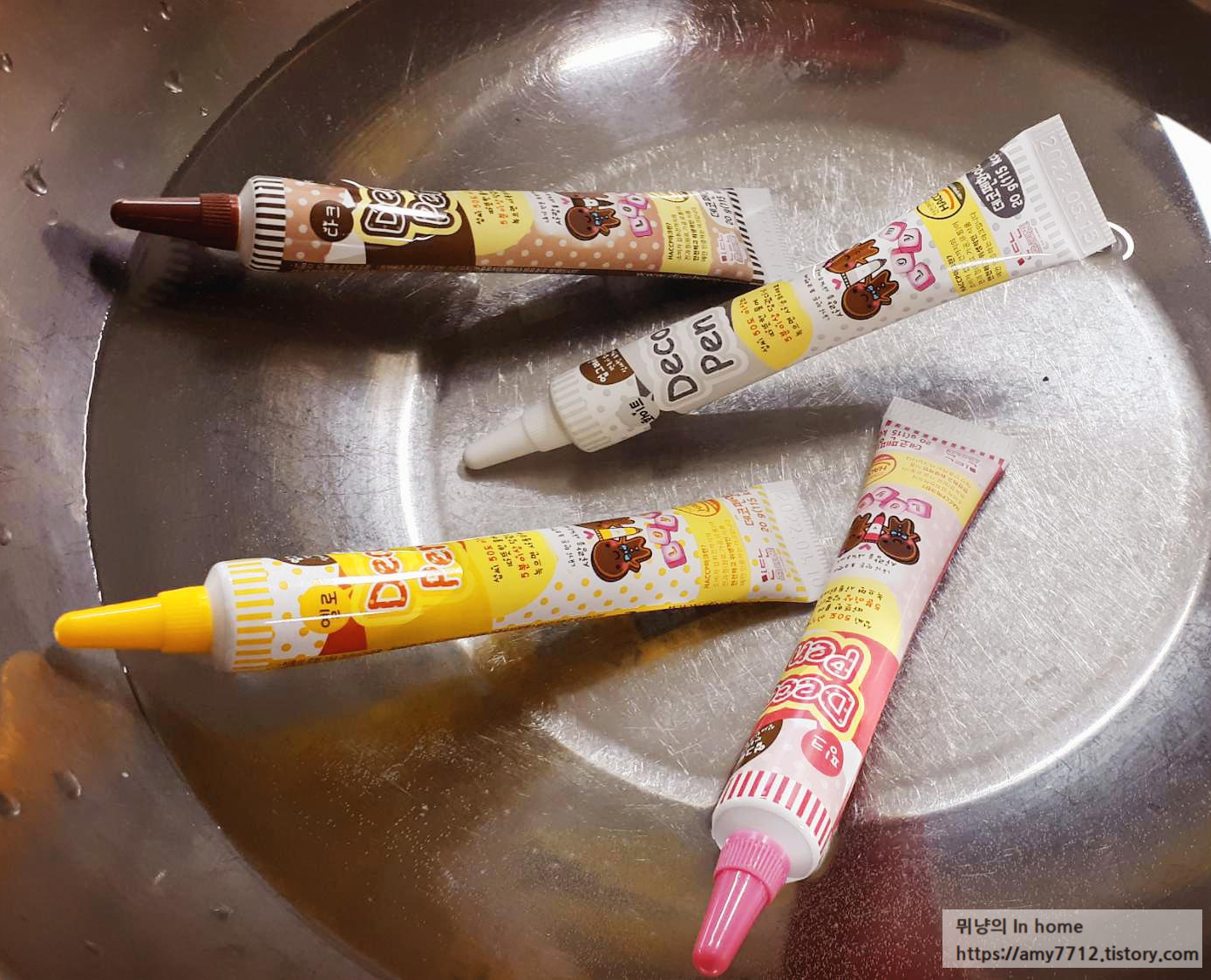 초코펜은 50도 이상의 뜨거운 물에 5분 동안 담가서 녹인 후 사용합니다.