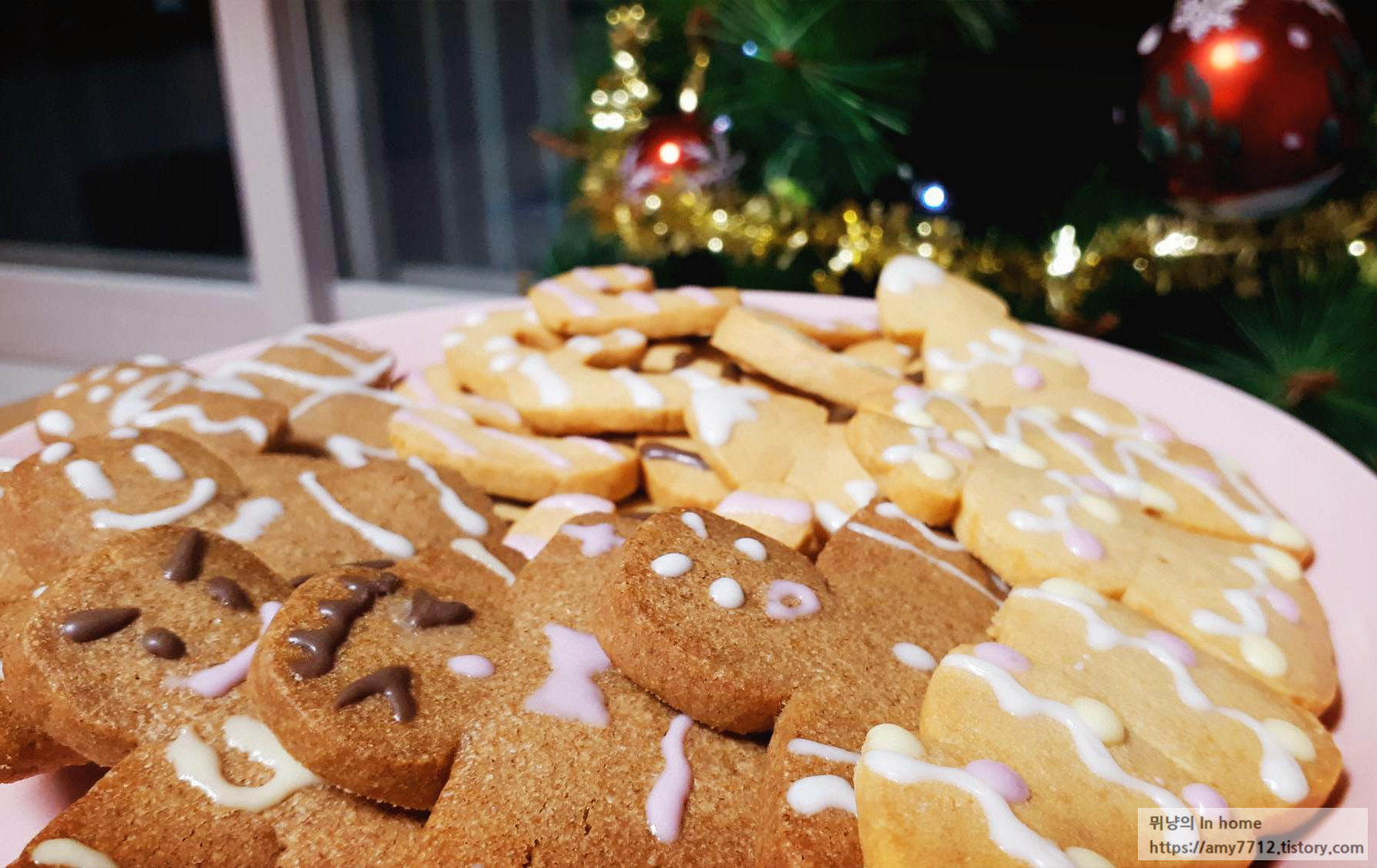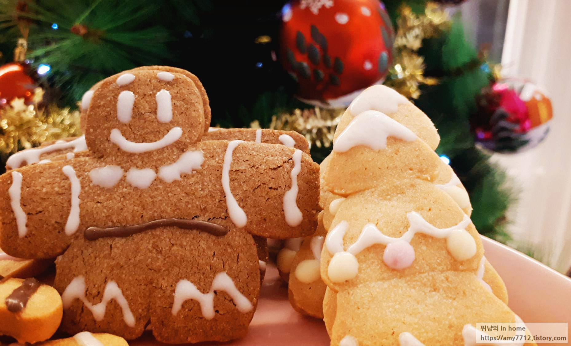 크리스마스 쿠키 느낌으로 트리 옆에서 같이 찍어보았습니다.